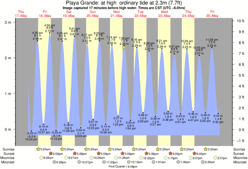 Forecast wind and swell just offshore from Playa Grande around the time the photo was taken