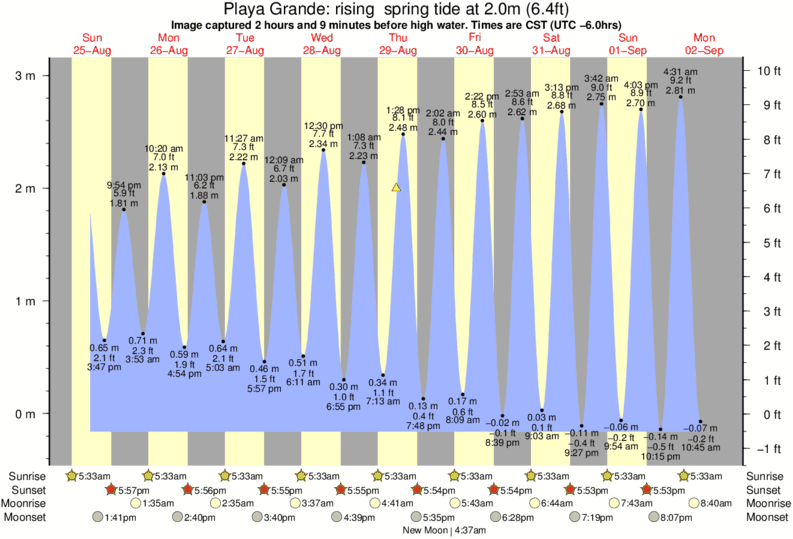 Forecast wind and swell just offshore from Playa Grande around the time the photo was taken
