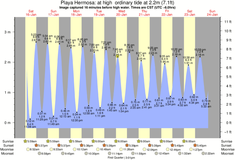 Forecast wind and swell just offshore from Playa Hermosa around the time the photo was taken