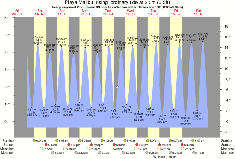 Forecast wind and swell just offshore from Playa Malibu around the time the photo was taken