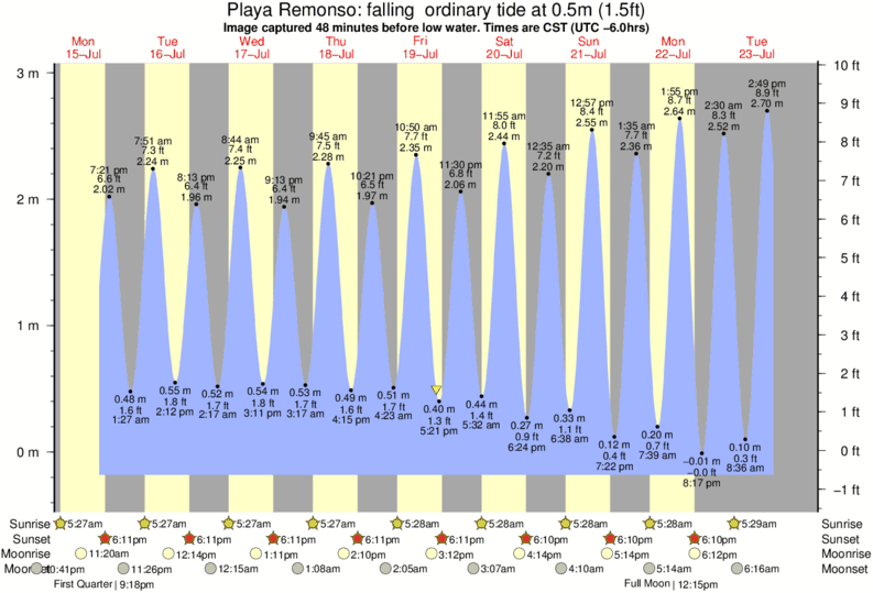 Forecast wind and swell just offshore from Playa Remonso around the time the photo was taken