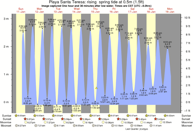 Forecast wind and swell just offshore from Playa Santa Teresa around the time the photo was taken