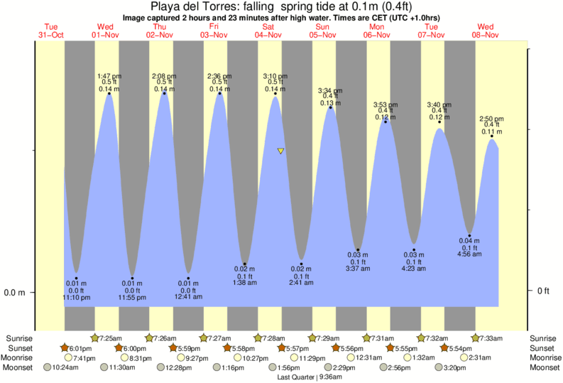 Image captured 2 hours and 23 minutes after high water (falling spring tide). Tide height was 0.1m (0.4 ft). Range 0.17m (0.6 ft). Toggle tide graph