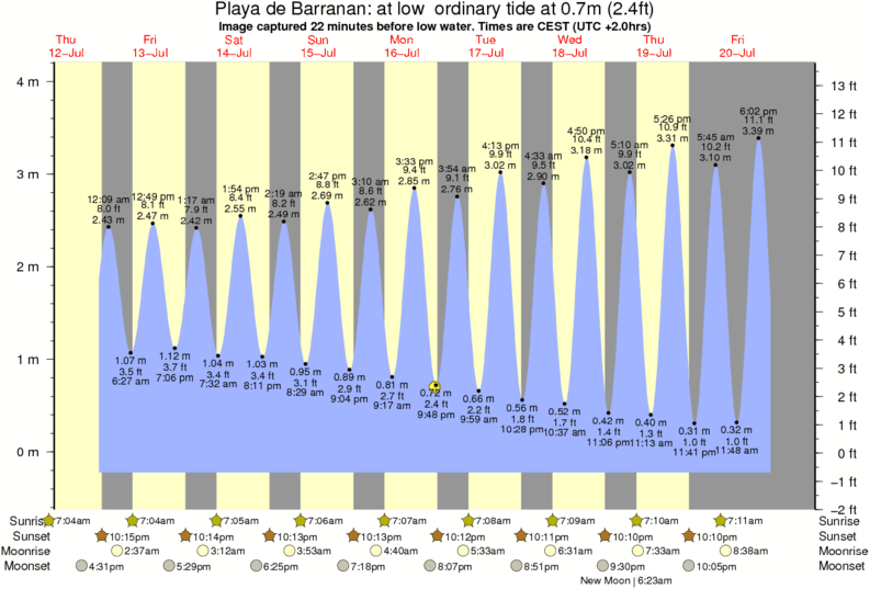 Forecast wind and swell just offshore from Playa de Barranan around the time the photo was taken