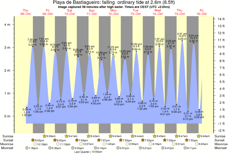 Image captured 58 minutes after high water (falling ordinary tide). Tide height was 2.6m (8.5 ft). Range 4.26m (14.0 ft). Toggle tide graph