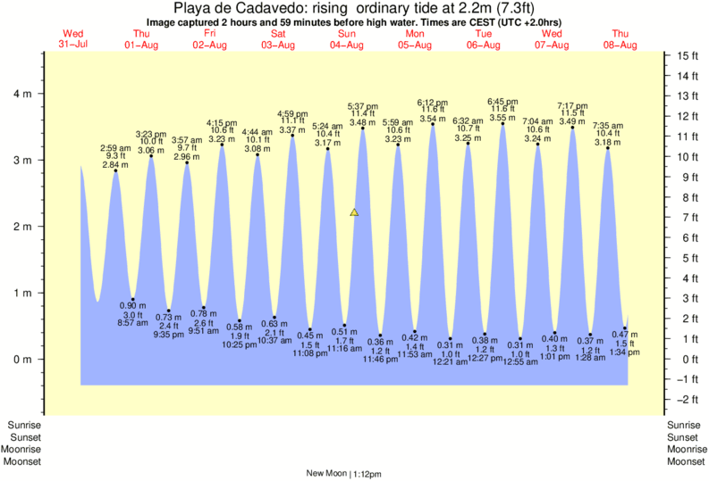 Image captured 2 hours and 59 minutes before high water (rising ordinary tide). Tide height was 2.2m (7.3 ft). Range 4.57m (15.0 ft). Toggle tide graph