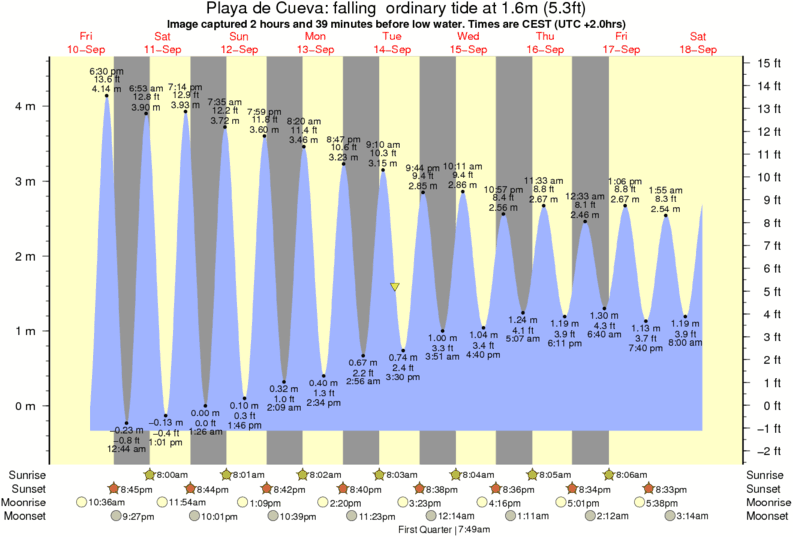 Image captured 2 hours and 39 minutes before low water (falling ordinary tide). Tide height was 1.6m (5.3 ft). Range 4.54m (14.9 ft). Toggle tide graph