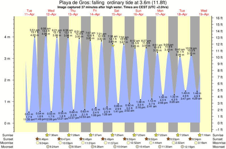 Image captured 37 minutes after high water (falling ordinary tide). Tide height was 3.6m (11.8 ft). Range 4.48m (14.7 ft). Toggle tide graph