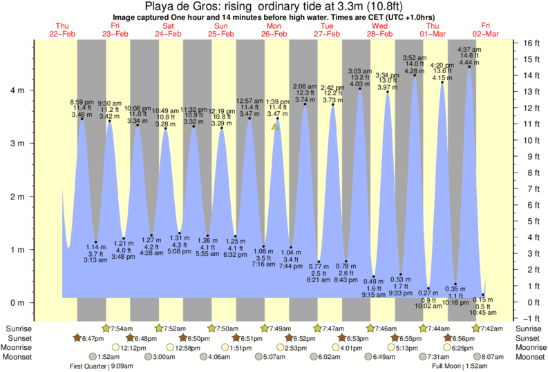 Image captured One hour and 14 minutes before high water (rising ordinary tide). Tide height was 3.3m (10.8 ft). Range 4.42m (14.5 ft). Toggle tide graph