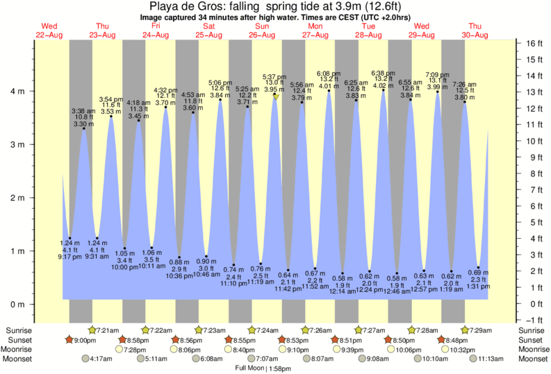 Image captured 34 minutes after high water (falling spring tide). Tide height was 3.9m (12.6 ft). Range 4.43m (14.5 ft). Toggle tide graph