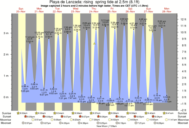 Image captured 2 hours and 2 minutes before high water (rising spring tide). Tide height was 2.5m (8.1 ft). Range 3.80m (12.5 ft). Toggle tide graph