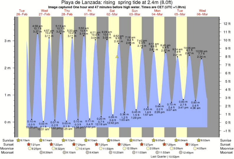 Image captured One hour and 47 minutes before high water (rising spring tide). Tide height was 2.4m (8.0 ft). Range 3.71m (12.2 ft). Toggle tide graph