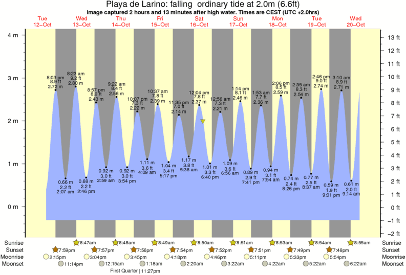 Image captured 2 hours and 13 minutes after high water (falling ordinary tide). Tide height was 2.0m (6.6 ft). Range 4.05m (13.3 ft). Toggle tide graph