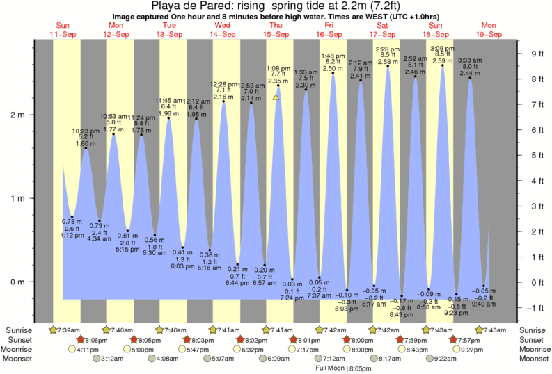 Forecast wind and swell just offshore from Playa de Pared around the time the photo was taken