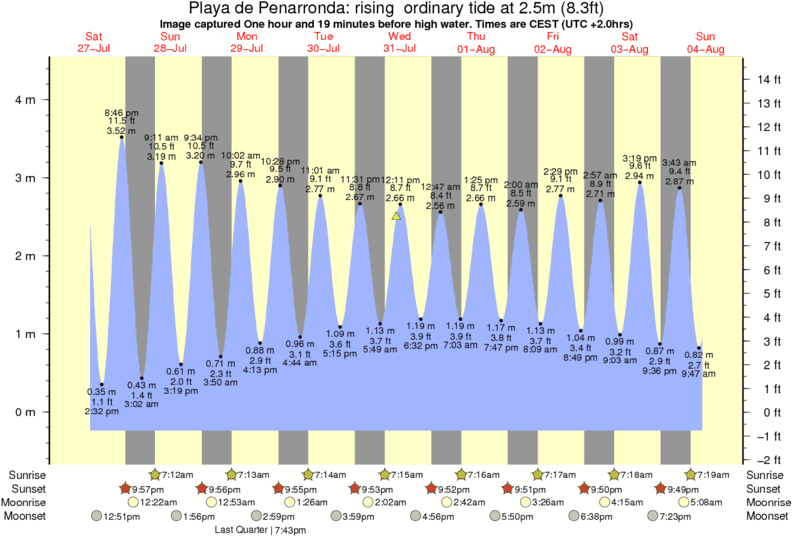 Image captured One hour and 19 minutes before high water (rising ordinary tide). Tide height was 2.5m (8.3 ft). Range 4.36m (14.3 ft). Toggle tide graph