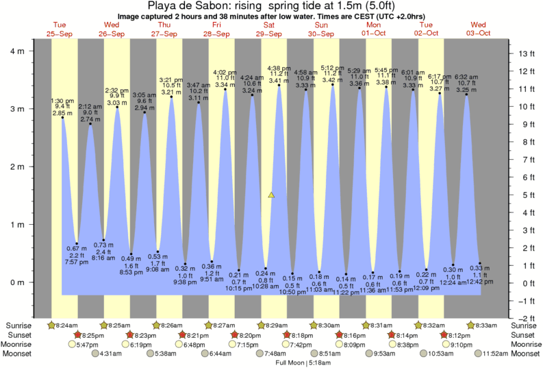 Forecast wind and swell just offshore from Playa de Sabon around the time the photo was taken