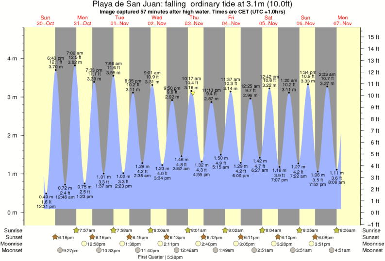 Forecast wind and swell just offshore from Playa de San Juan around the time the photo was taken