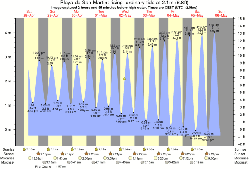 Image captured 2 hours and 55 minutes before high water (rising ordinary tide). Tide height was 2.1m (6.8 ft). Range 4.43m (14.5 ft). Toggle tide graph