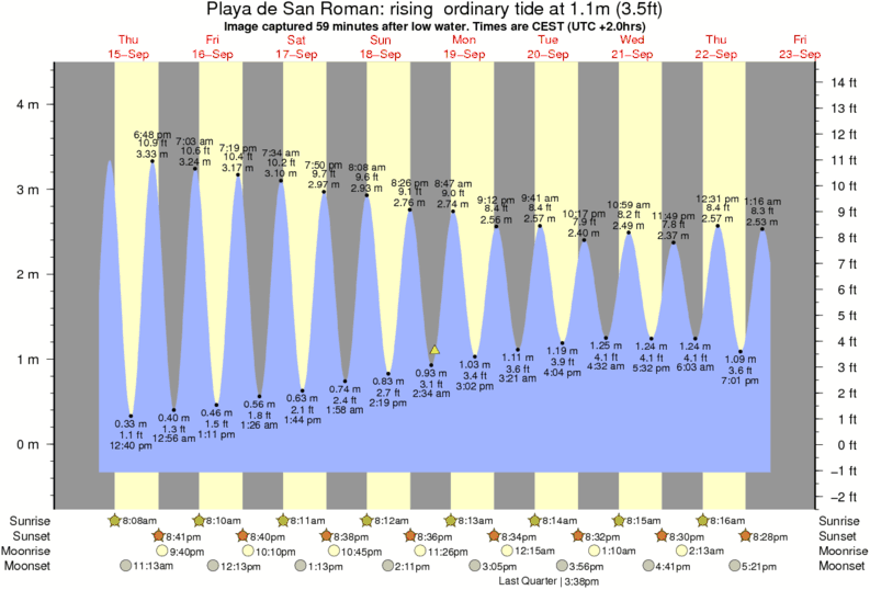 Image captured 59 minutes after low water (rising ordinary tide). Tide height was 1.1m (3.5 ft). Range 4.39m (14.4 ft). Toggle tide graph
