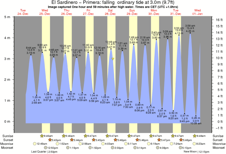Image captured One hour and 59 minutes after high water (falling ordinary tide). Tide height was 3.0m (9.7 ft). Range 4.66m (15.3 ft). Toggle tide graph