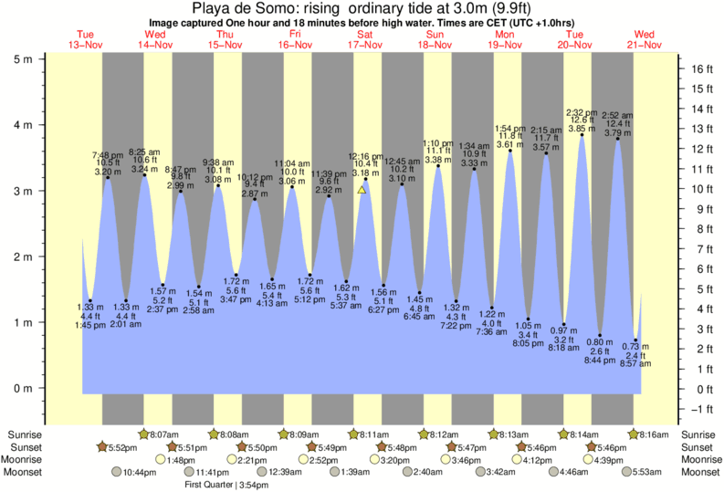 Image captured One hour and 18 minutes before high water (rising ordinary tide). Tide height was 3.0m (9.9 ft). Range 4.72m (15.5 ft). Toggle tide graph