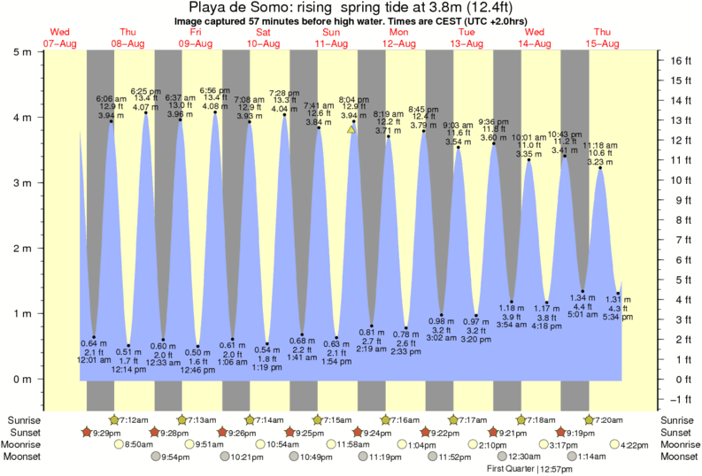 Image captured 57 minutes before high water (rising spring tide). Tide height was 3.8m (12.4 ft). Range 4.60m (15.1 ft). Toggle tide graph