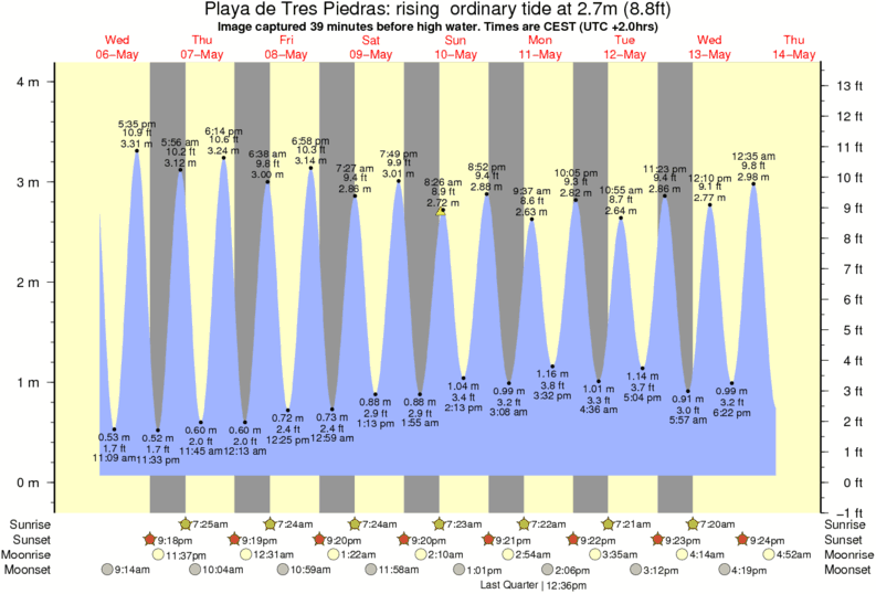 Image captured 39 minutes before high water (rising ordinary tide). Tide height was 2.7m (8.8 ft). Range 3.75m (12.3 ft). Toggle tide graph