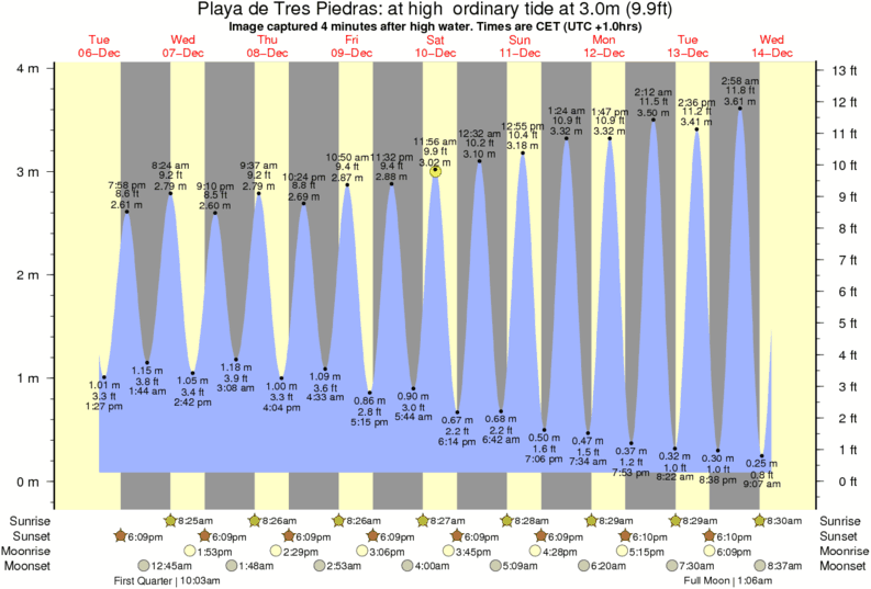 Image captured 4 minutes after high water (at high ordinary tide). Tide height was 3.0m (9.9 ft). Range 3.61m (11.8 ft). Toggle tide graph
