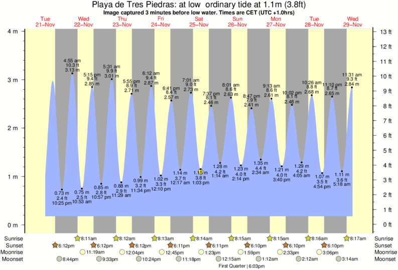 Forecast wind and swell just offshore from Playa de Tres Piedras around the time the photo was taken