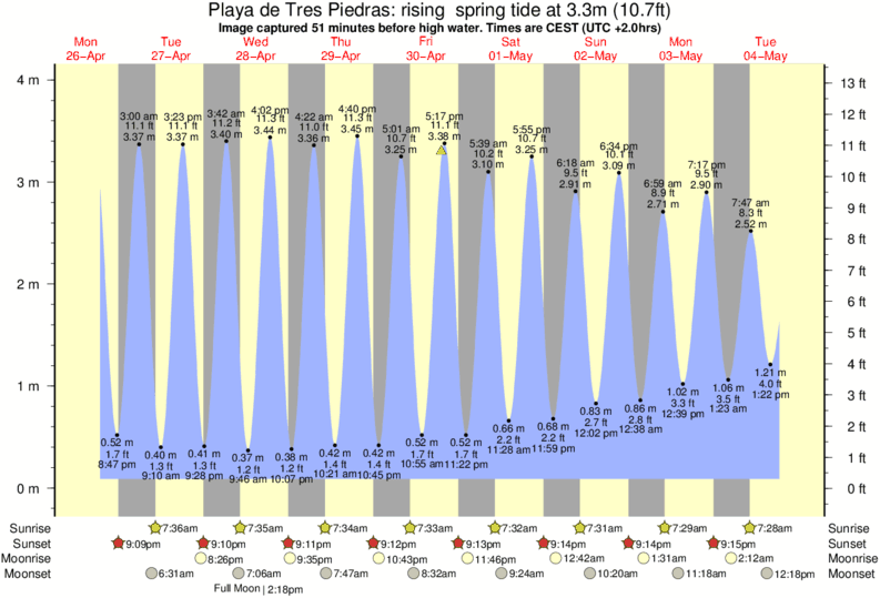 Image captured 51 minutes before high water (rising spring tide). Tide height was 3.3m (10.7 ft). Range 3.70m (12.1 ft). Toggle tide graph