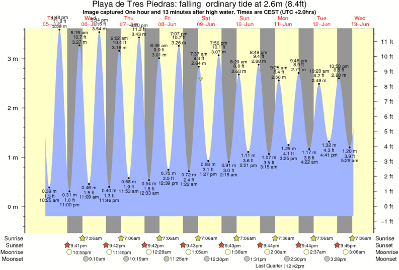 Image captured One hour and 13 minutes after high water (falling ordinary tide). Tide height was 2.6m (8.4 ft). Range 3.46m (11.4 ft). Toggle tide graph