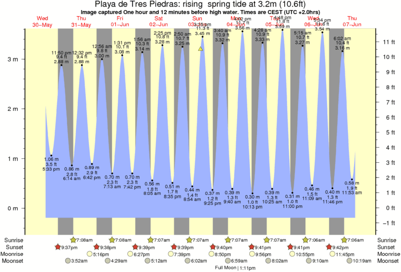 Forecast wind and swell just offshore from Playa de Tres Piedras around the time the photo was taken