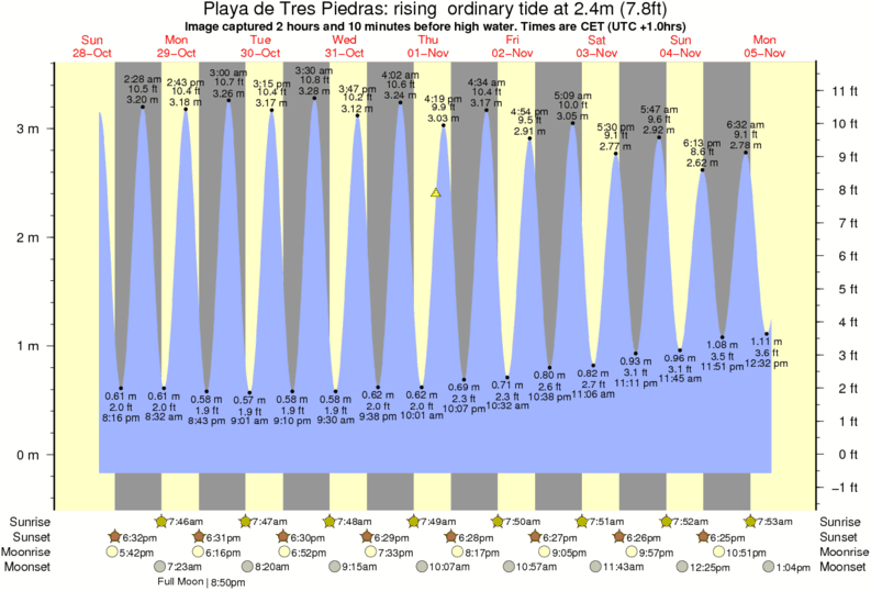 Image captured 2 hours and 10 minutes before high water (rising ordinary tide). Tide height was 2.4m (7.8 ft). Range 3.44m (11.3 ft). Toggle tide graph