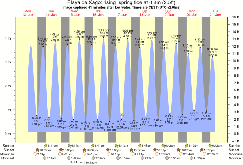 Image captured 41 minutes after low water (rising spring tide). Tide height was 0.8m (2.5 ft). Range 4.37m (14.3 ft). Toggle tide graph