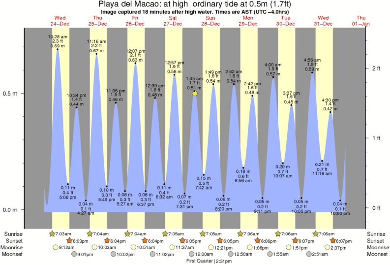 Forecast wind and swell just offshore from Playa del Macao around the time the photo was taken