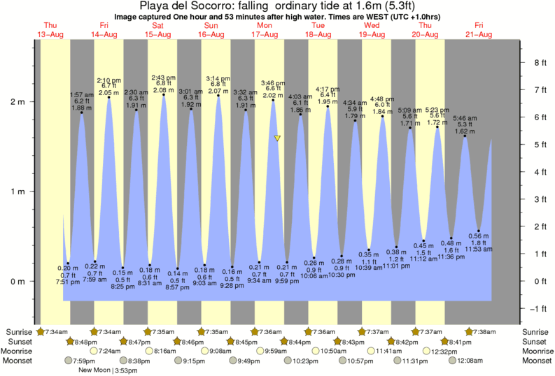 Forecast wind and swell just offshore from Playa del Socorro around the time the photo was taken