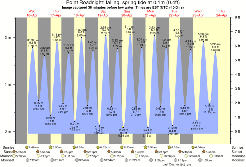 Image captured 38 minutes before low water (falling spring tide). Tide height was 0.1m (0.4 ft). Range 2.25m (7.4 ft). Toggle tide graph