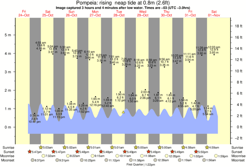 Forecast wind and swell just offshore from Pompeia around the time the photo was taken