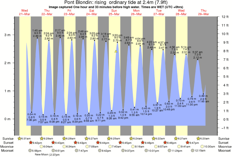 Image captured One hour and 33 minutes before high water (rising ordinary tide). Tide height was 2.4m (7.9 ft). Range 3.54m (11.6 ft). Toggle tide graph