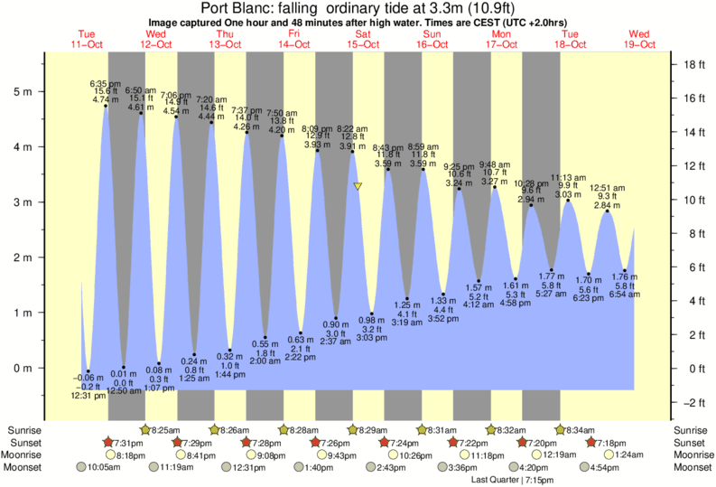 Image captured One hour and 48 minutes after high water (falling ordinary tide). Tide height was 3.3m (10.9 ft). Range 5.56m (18.2 ft). Toggle tide graph