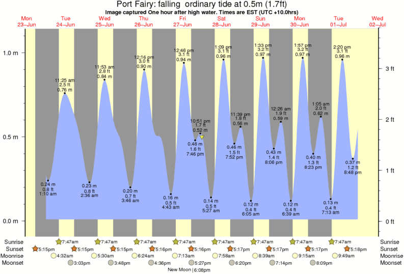 Image captured One hour after high water (falling ordinary tide). Tide height was 0.5m (1.7 ft). Range 1.03m (3.4 ft). Toggle tide graph