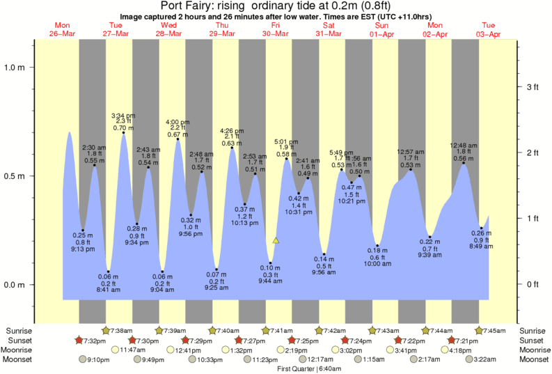 Image captured 2 hours and 26 minutes after low water (rising ordinary tide). Tide height was 0.2m (0.8 ft). Range 1.09m (3.6 ft). Toggle tide graph