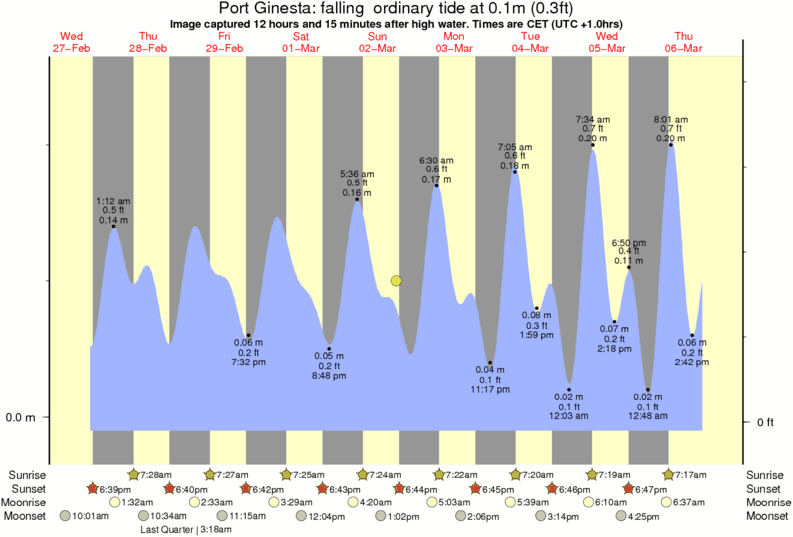 Image captured 12 hours and 15 minutes after high water (falling ordinary tide). Tide height was 0.1m (0.3 ft). Range 0.25m (0.8 ft). Toggle tide graph