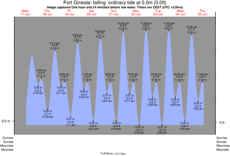 Image captured One hour and 24 minutes before low water (falling ordinary tide). Tide height was 0.0m (0.0 ft). Range 0.25m (0.8 ft). Toggle tide graph