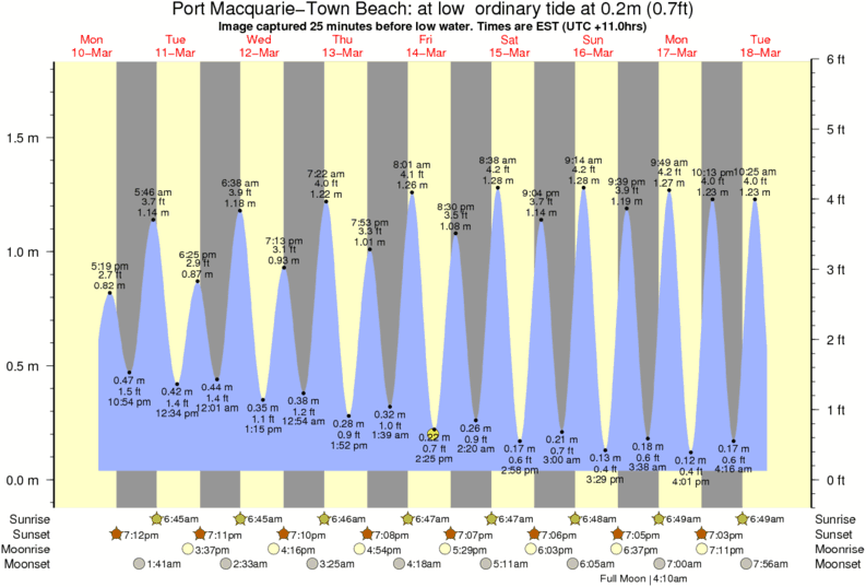 Forecast wind and swell just offshore from Port Macquarie-Town Beach around the time the photo was taken