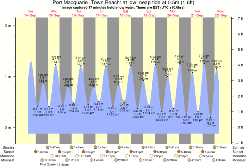 Image captured 17 minutes before low water (at low neap tide). Tide height was 0.5m (1.6 ft). Range 2.07m (6.8 ft). Toggle tide graph