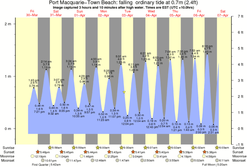 Forecast wind and swell just offshore from Port Macquarie-Town Beach around the time the photo was taken