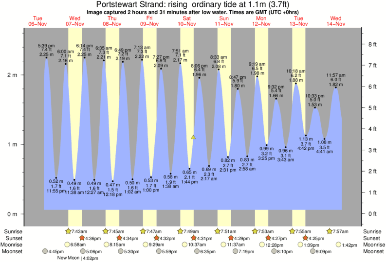 Image captured 2 hours and 31 minutes after low water (rising ordinary tide). Tide height was 1.1m (3.7 ft). Range 2.38m (7.8 ft). Toggle tide graph