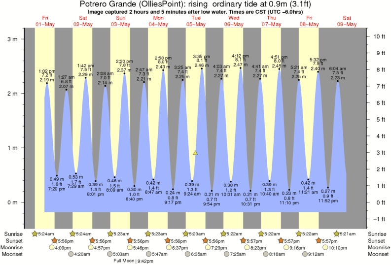 Image captured 2 hours and 5 minutes after low water (rising ordinary tide). Tide height was 0.9m (3.1 ft). Range 3.08m (10.1 ft). Toggle tide graph