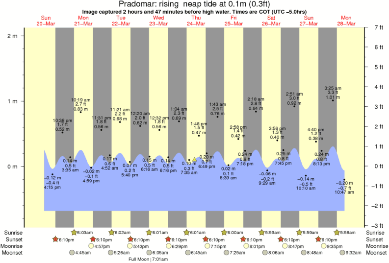 Image captured 2 hours and 47 minutes before high water (rising neap tide). Tide height was 0.1m (0.3 ft). Range 2.55m (8.4 ft). Toggle tide graph